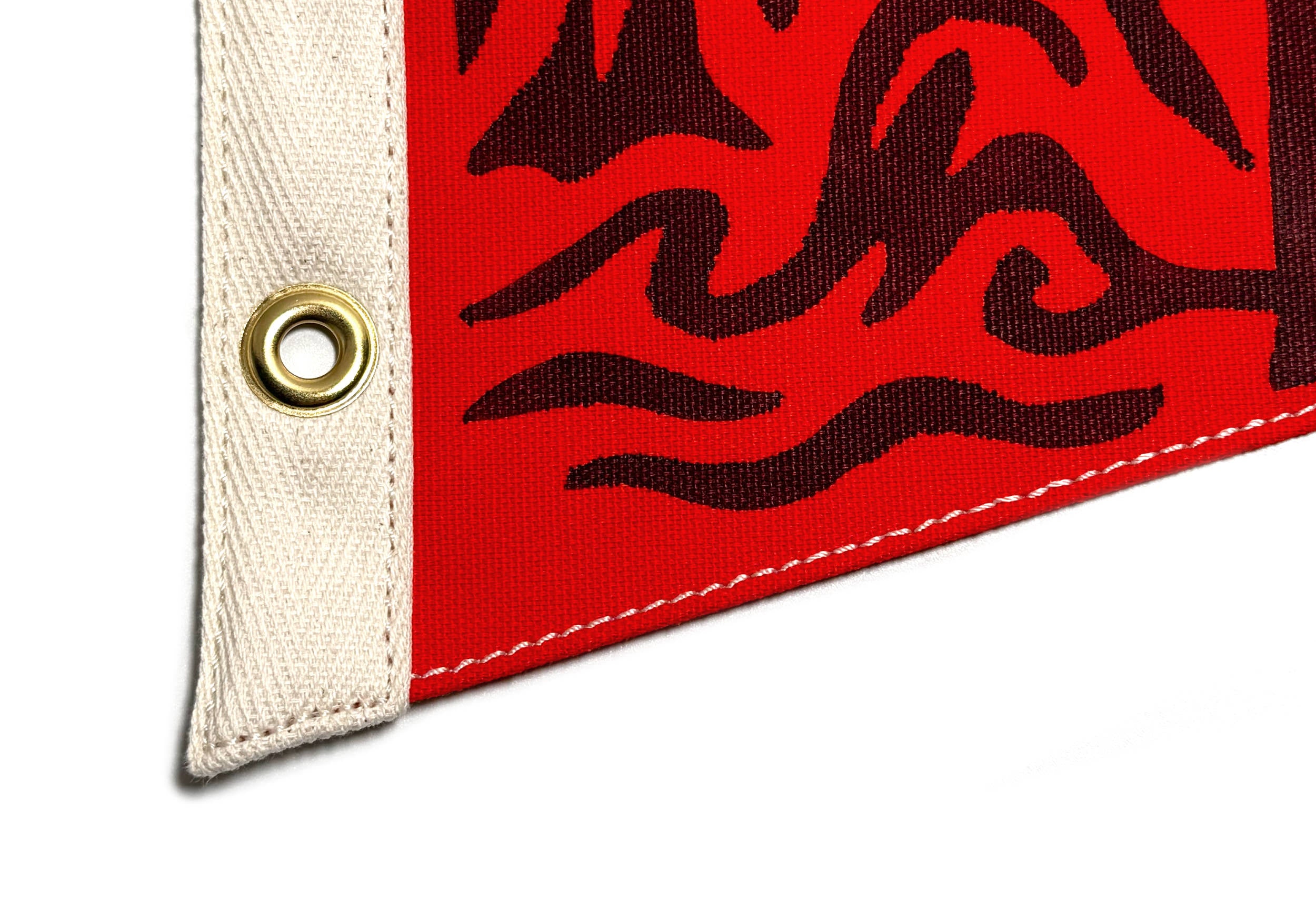 Materials: Each flag is hand-sewn with durable polyester thread, twill tape, solid brass grommets, and stamped with Wild Northland branding. Keep in mind, every pennant is unique—slight imperfections truly make each creation one-of-a-kind.