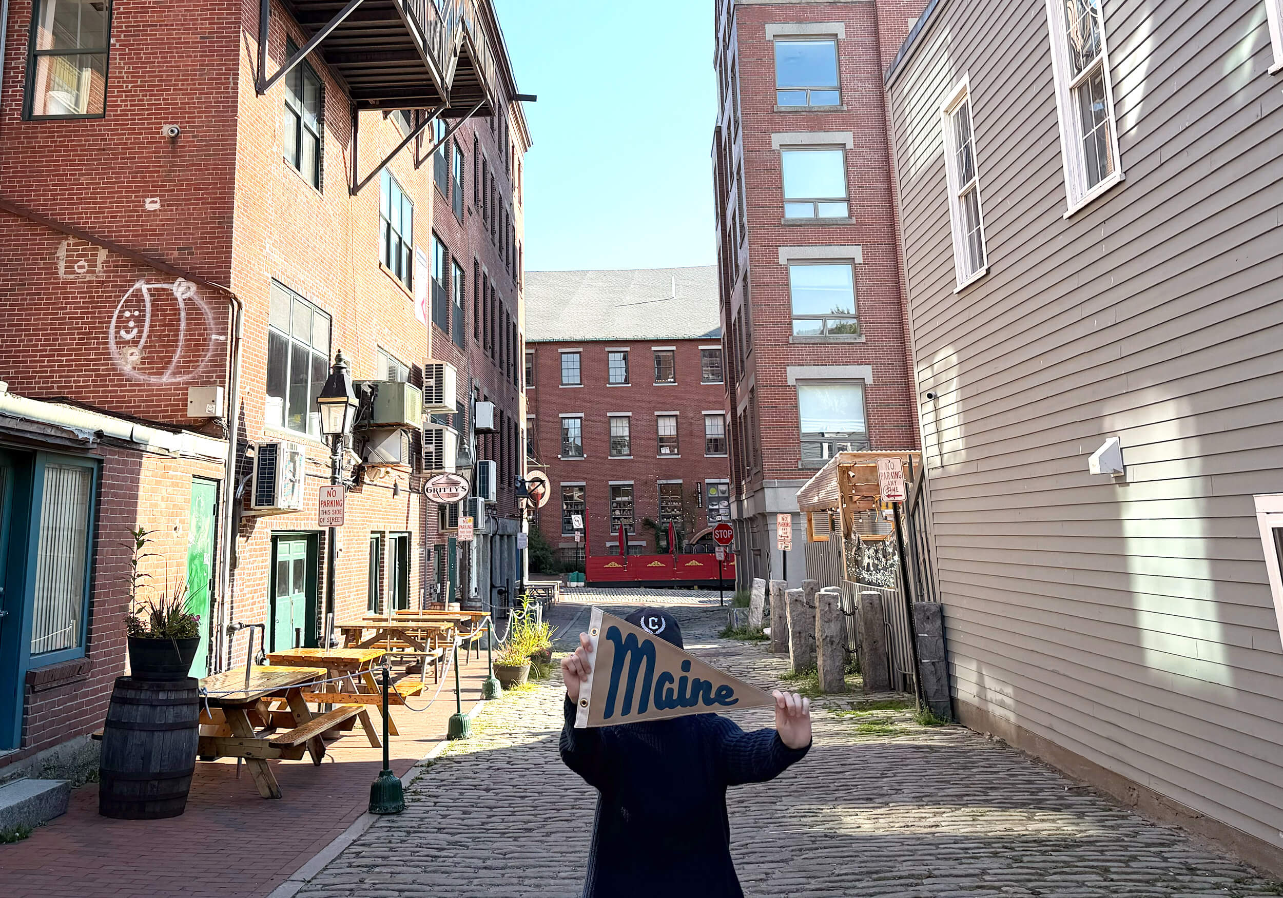This hand-made Maine script pennant uses 9oz khaki duck canvas. Artwork is hand-painted with quality navy blue acrylic paint.